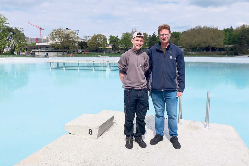 Auskünfte erteilen, nach Badenden in Not Ausschau halten, den Chlorgehalt überprüfen, Rasen mähen oder WC-Papier auffüllen: Die Arbeit einer Bademeisterin oder eines Bademeisters ist vielfältig und ein typischer Quereinsteigerberuf. Zumindest bis anhin. Denn seit Mitte 2023 gibt es neu eine Ausbildung mit EFZ dafür. Wenn am 10. Mai die Stadtberner Badisaison startet, sorgen Anlagenchef Martin Sommer und seine Leute dafür, dass die Weyerligäste sicher baden können. Seit letztem August gehört auch Jano Schranz zum Team. Der 17-Jährige ist der erste Stadtberner Lernende der neu geschaffenen Ausbildung: Er wird Fachmann Betriebsunterhalt EFZ mit Schwerpunkt Sportanlagen.