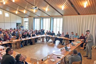 Die Heubühne ist rappelvoll. Es werden noch links und rechts Stühle hingestellt,…
