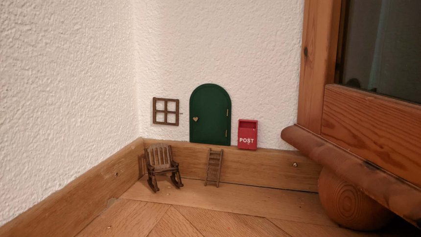 D Mueter het gheimnisvoll glächlet: «E Wichteltür. Hindedra wohnt es chlyses Wichteli. Villech bringts öich sogar es Wienachtsgschänk? Aber…» Si streckt der Zeigfinger uuf: «Äs darf öich nid gseh, süsch verschwindets u chunt nie meh.»